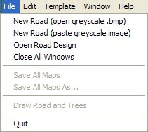 To start a new road by pasting in an image, select menu File-New Road (paste grayscale image). Before pasting in an image, you must first copy an image from a 3D program (for example, Bryce).