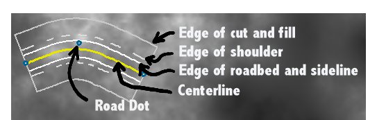 Once a road has been made and saved, the design information is saved in a text file. See Saving Image Maps. This file can be opened to restore all the road icons to the same state as when the road was saved. See Reusing Road Designs and Templates.