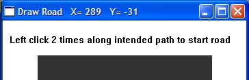 Once an image has been opened or pasted, the Draw Road window will show the message "Left click two times along intended path to start road":
