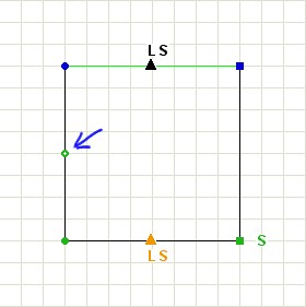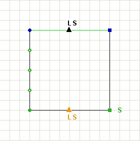 | The solid round dots are the anchor points of the line. The line will start and stop at the solid round dots. The hollow round dots create the curve. If it is in a straight line between the solid dots, as shown at the right, the line will be straight. To move a dot, click and hold with the left mouse button, drag to a new position, and release the mouse button. |