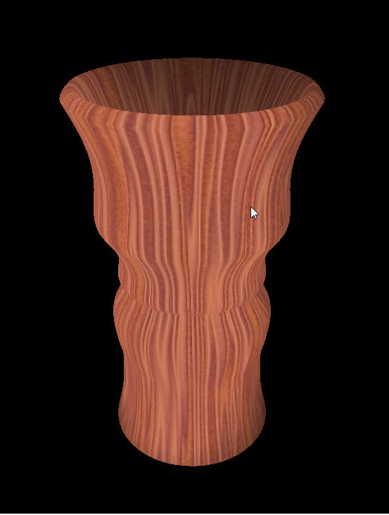 FINAL DESIGN. In the image below, a larger size render of the finished object is shown. Also shown is a render with a different wood texture. A future tutorial will explain how to change textures in Lathe Magic.
