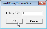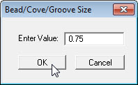 5. Add a 3rd blockSelect menu item Actions-Set Bead/Cove/Groove/Block Size. Set value to 0.75 and click on OK. |