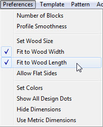 Fit to Wood LengthSelect menu item Preferences-Fit to Wood Length. A check mark will appear showing that design will now be adjusted to fit the wood length as specified in the wood size dialog. |