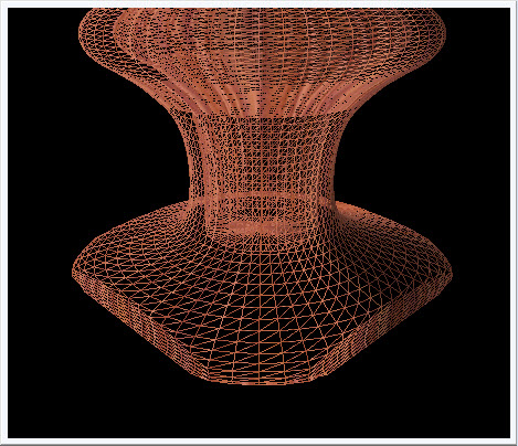 A close up 3D view of the pedestal in wireframe mode. This makes it easier to see how the flat sides will appear. |