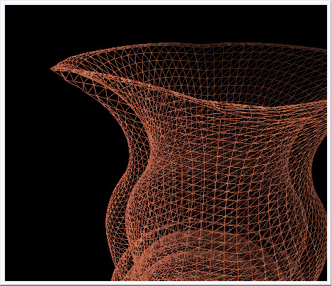 A close up 3D view of the top lip in wireframe mode. By rotating the model on the screen, I was able to inspect the lip to ensure that the interior has sufficient separation from the exterior. |